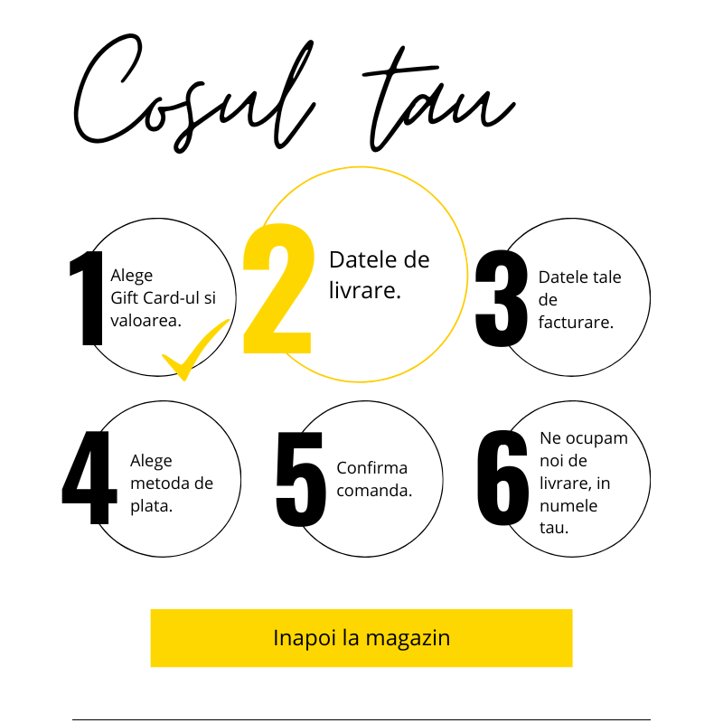 Cosul tau de cumparaturi este gol. Pentru a adauga un gift card in cos te rugam sa te intorci in magazin.
